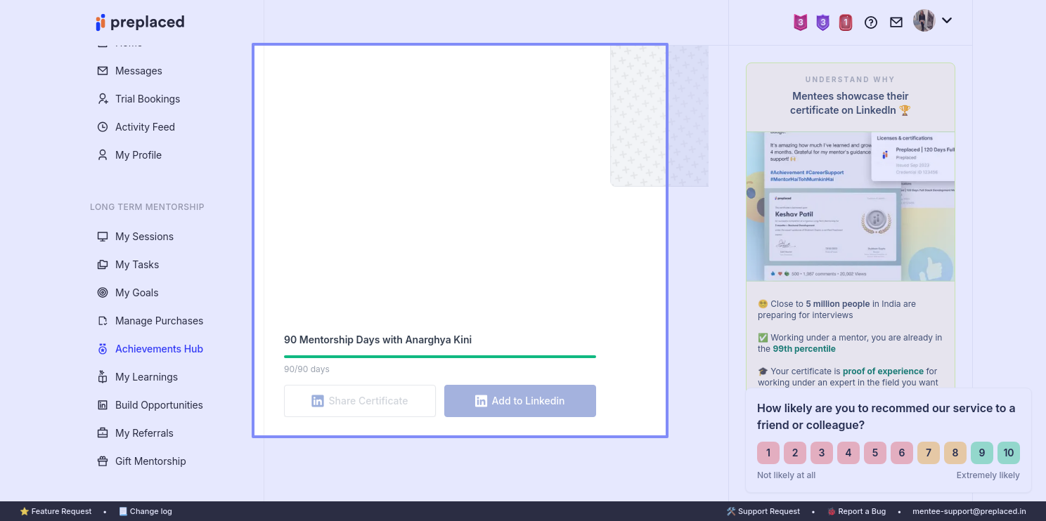 My 90 days mentorship certificate is not unlocked, even though 90 days are completed.