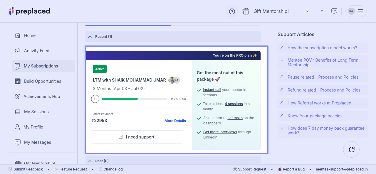 I have paused my course for 15 days. The website should display my progress as Day 36/90, but it has incorrectly counted the 15 days, showing 50/90. Please take the necessary action to correct it to 36/90 days.