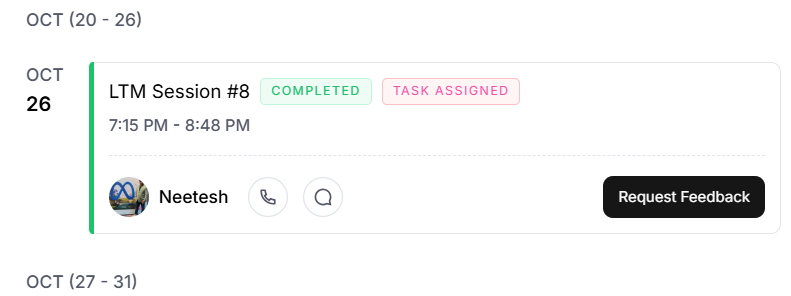 I joined the session with the link sent by my mentor and I able to see the status got changed from the booked to completed status.
