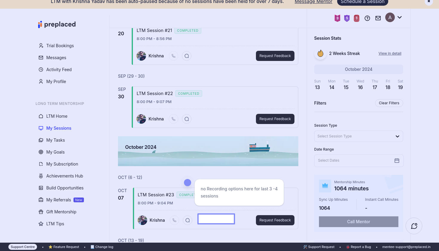 Hello Team, I am able to download past sessions. Can you please help