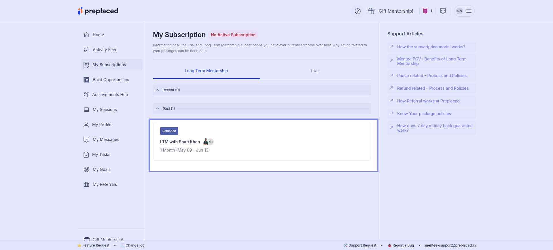 I've cancelled the subscription with one of the mentor shafi khan and its show's refunded but in my account the preplaced coins are not reflected