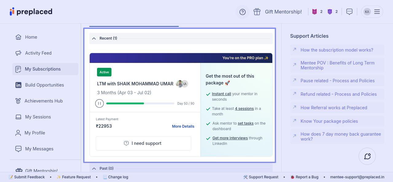 I have paused my course for 15 days. The website should display my progress as Day 36/90, but it has incorrectly counted the 15 days, showing 50/90. Please take the necessary action to correct it to 36/90 days.