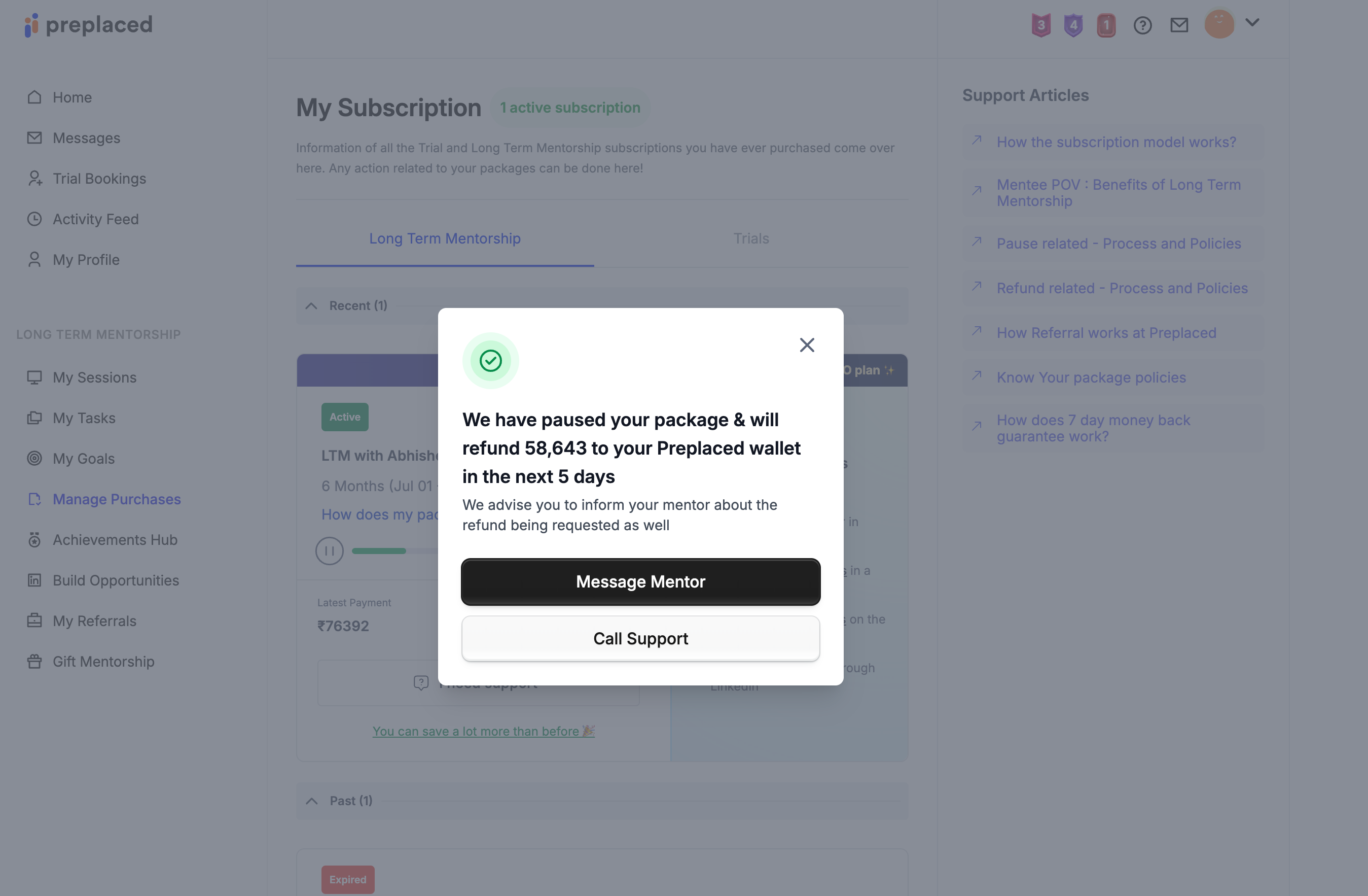 I have requested refund for changing mentor and I have also been notified that Rs. 58,643 would be transferred to my Preplaced wallet. However, itβs been 3 days and still yet I have not received the credits to my wallet.